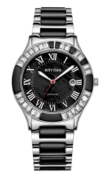 【回馈粉丝活动–指定型号: F1203T02 限量认购】Rhythm丽声时计 - 陶瓷蓝宝石面镶施华洛世奇水晶的黑闪酷炫手表震撼优惠