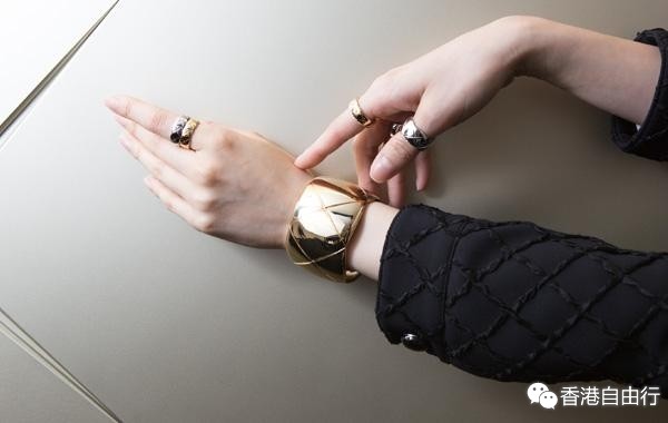 全新高级珠宝系列COCO CRUSH,共有5款戒指及一款粗手镯,前者备有18K黄金或18K白金材质,以及中、小型号选择;後者则以18K黄金打造。每款珠宝线条圆润、设计简约,彻底展示着CHANEL的现代感及细腻质感。