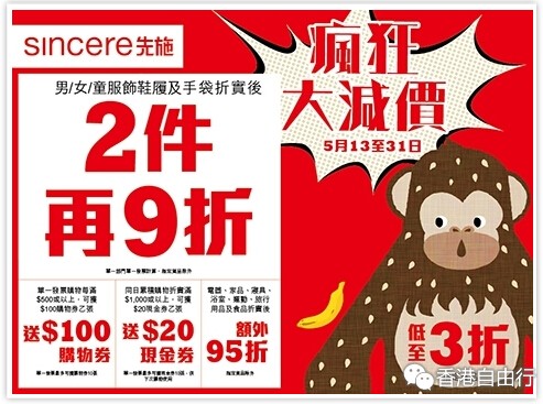 先施疯狂大减价系大家扫货好时机! 除了全场货品激减外,还有每日限时热卖及精选货品,不要错过此超值优惠!