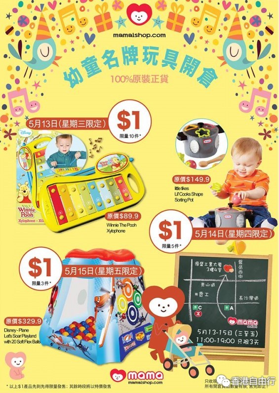 香港优惠:幼童名牌玩具开仓低至$1 只限三天(15年5月13-15日)