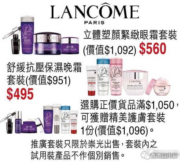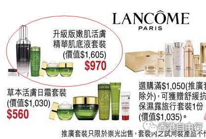 买1瓶小黑瓶精华送4个中样,都是非常经典的中样哦。整个套装价值1600多。sogo店庆仅售970HK,送的这四个中样,都是超级无敌实用的。用的到的中样。。兰蔻的草本系列我自己有用,很好用, 草本晚霜抹多一些可以当睡眠面膜,早上起来皮肤嫩嫩的。