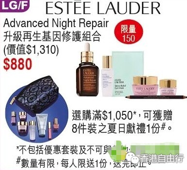 雅诗兰黛的小棕瓶套装,这次还比以前好点,单瓶小棕瓶的价格买整套,以前还要九百出头才能买一套。不过,套装还是不如参加买满送,而店庆的买满送力度一般,有两彩妆在里面。上次SOGO推广活动,送的两面霜一眼霜再加精华,比这值钱多了!不是急需的不要在店庆买,人多进店前就得排长队,套装限购一套,性价比还低。