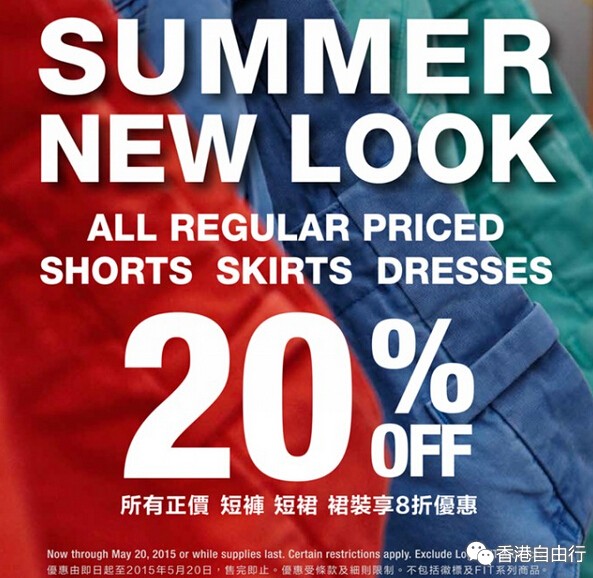 香港打折:GAP所有正价短裤、短裙、裙装8折优惠(至15年5月20日)