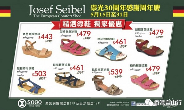 香港打折:Josef Seibel崇光30周年感谢周年庆购物优惠(15年5月15至31日)
