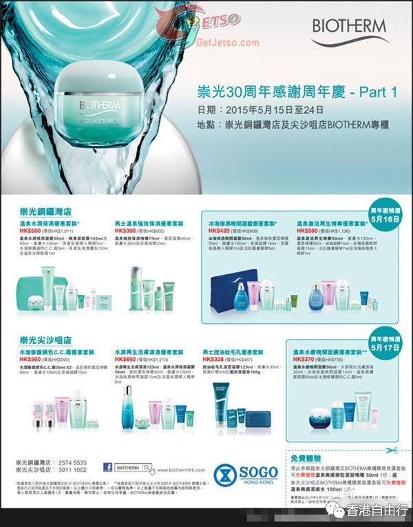 香港打折:碧欧泉BIOTHERM 祟光百货30周年感谢周年庆购物优惠(至15年5月24日)