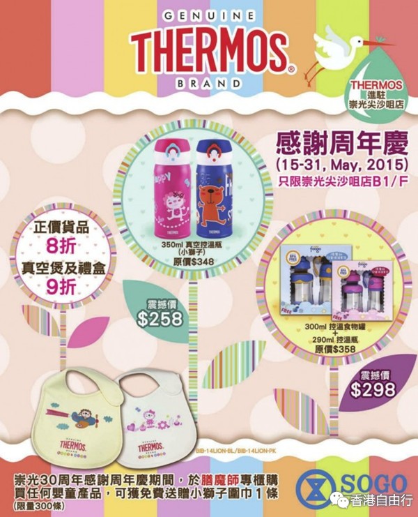 香港打折:Thermos膳魔师 崇光30周年感谢周年庆购物优惠(15年5月15至31日)