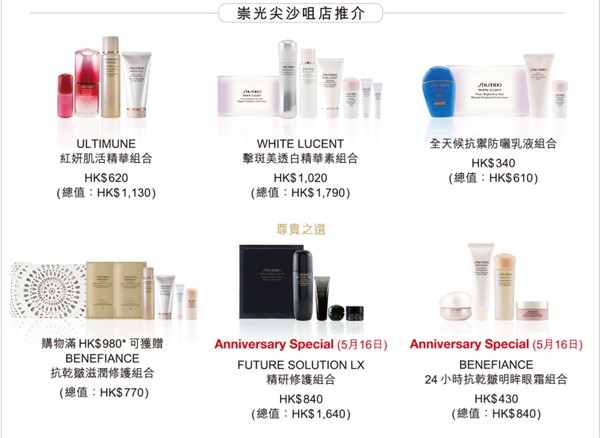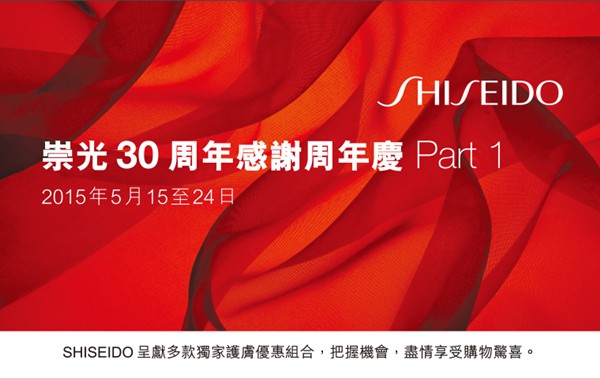 SHISEIDO资生堂sogo店庆尖沙咀店独家购物礼遇(15年5月15至24日);