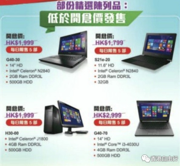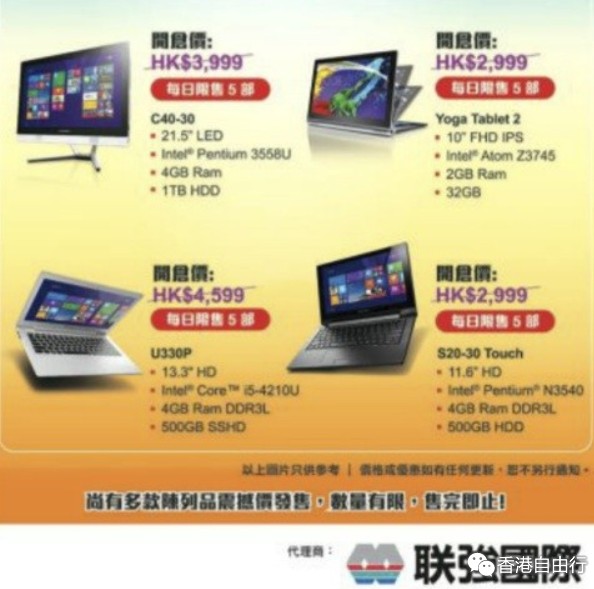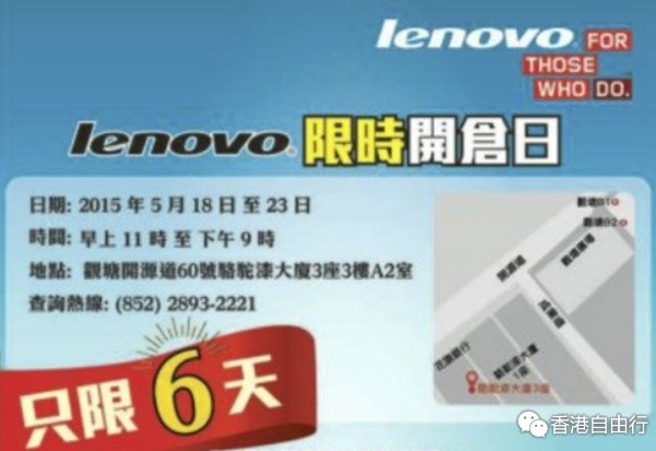 香港优惠:LENOVO 限时开仓日只限六天(15年5月18至23日)