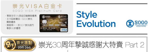 香港打折:sogo崇光百货铜锣湾店9F 30周年感谢大特卖PART 2(15年5月20至26日)