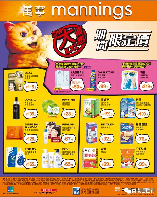 香港打折:屈臣氏店内购物优惠(至15年5月25日)