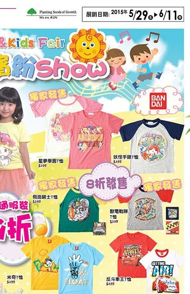 香港打折:AEON夏日婴孩缤纷Show 海量婴儿用品购物优惠(15年5月29至6月11日)