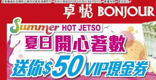 香港打折:卓悦Bonjour最新门市优惠(15年5月29日至6月4日)