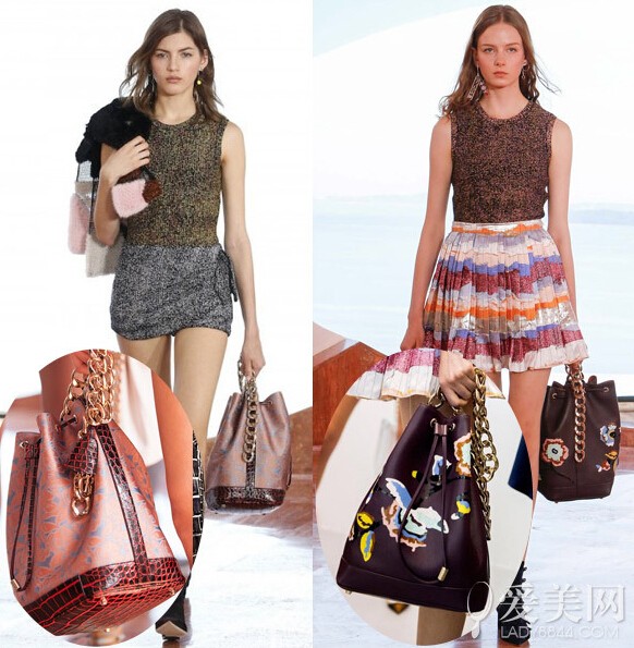 Dior也出水桶包啦!在Dior 2016早春度假系列秀场上出现了拼接水桶包,水桶包是不是太火了点呢?从1932年推出第一款水桶包Noe的Louis Vuitton ,到青出于蓝而胜于蓝的Lancel,再到现在的Dior就可以知道这款经典包包到底有多大的吸引力了!