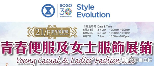香港打折:SOGO崇光百货铜锣湾店21F/青春便服与女士服饰展销低至3折(15年6月3至6月7日)