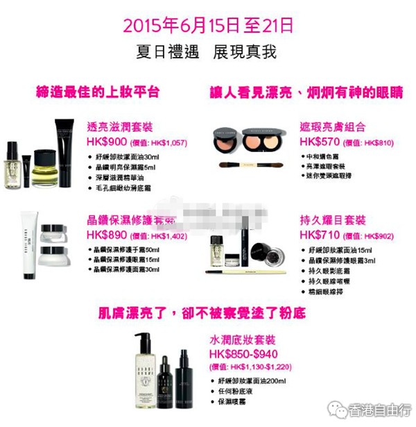 香港打折:Bobbi Brown芭比波朗夏日购物礼遇(15年6月15至21日)