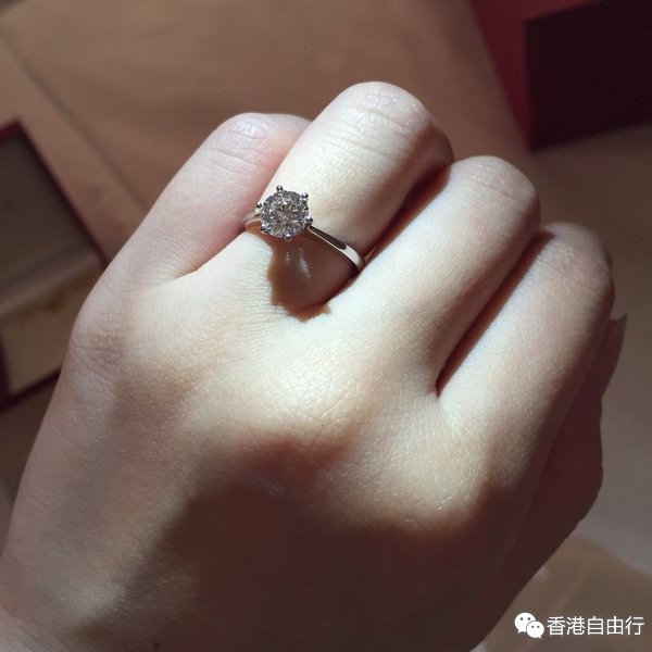 经过佐敦地铁站,金光闪闪的就是中港城了,10点准时到,一进门就又端茶送水,又哈根达斯的,等了将近1小时才到我们,一对一的服务也是没有办法的。直接报上你的预算,根据你的预算买闪闪,之前做了很多功课所以目标也很明确,最后拿下一个80分,D,VS2,我拿放大镜非常仔细的看过都看不出杂质,啦啦啦,好赞好赞。谢谢亲爱的满足我闪闪的欲望。最后还刻了字,约了隔天就取钻,就是后悔自己没有拿下那款排钻,和钻石一起搭着带很漂亮。