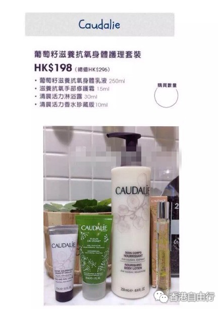 香港购物:法国Caudalie欧缇丽HK专柜精选套装及限量产品(附HK价格)