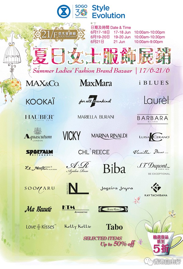香港打折:SOGO崇光百货铜锣湾店21F/夏日女士服饰展销(15年6月17至6月21日)