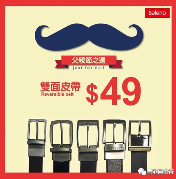 香港打折:Baleno父亲节之选 精选皮带原价$139现价仅需$49(至15年6月21日)