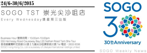 推荐导读:香港打折:SOGO崇光百货铜锣湾店最新购物优惠(15年6月24至6月30日)