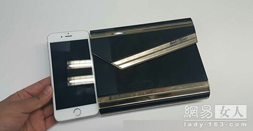 Jimmy choo Candy手包竖着的大小和iphone6的大小持平,但是手机想要立着放在包包里也是没啥可能的。