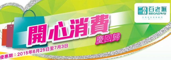 香港打折:百老汇开心消费庆回归优惠(至15年7月3日)