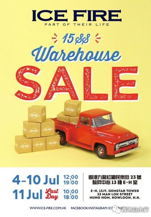 香港打折:ICE FIRE 15SS货仓减价割引大优惠(15年7月4至11日)