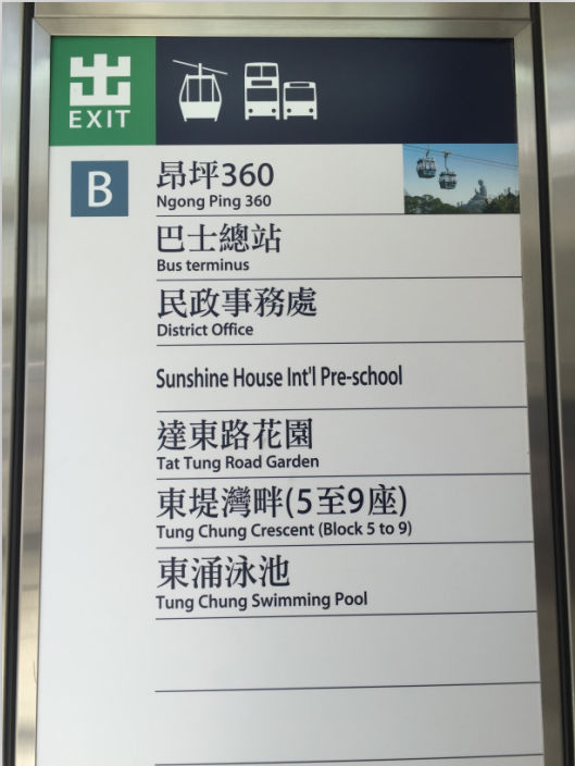 我是坐地铁过去,从落马洲到东涌,也历经了一个多小时;是这个出口噢,附近还有昂坪360,可以去大屿山走走