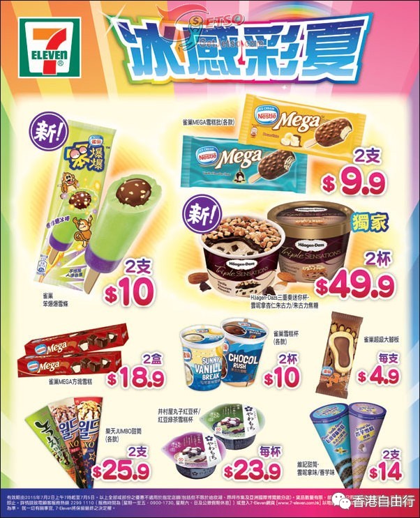 香港打折:7-Eleven 冰感彩夏雪糕产品购买优惠(至15年7月5日)