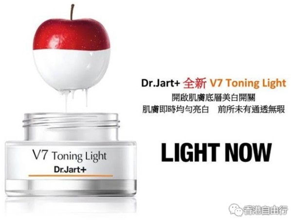 韩国医学美容品牌Dr.Jart+深明都市女性对快速美白的需求,推出全新V7 Toning Light维他命透白轻盈霜,内外夹攻,即时有效均匀及提亮肌肤,踢走暗哑。同时,配方中7种维他命複合物,从肌肤内部预防黑色素形成和积聚,今个夏季为你打造亮泽无瑕美白肌。