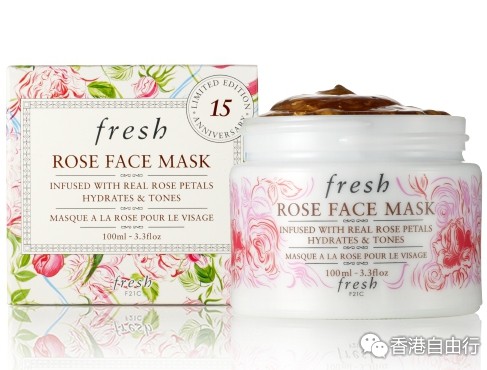 具滋润和舒缓效用的玫瑰保湿面膜是Fresh玫瑰保湿系列的皇牌产品之一。冰凉的啫喱配方蕴藏天然玫瑰花瓣,为肌肤保湿,调节肤色,让肌肤回复柔闰光泽。每瓶面膜平均蕴含2.5朵玫瑰。