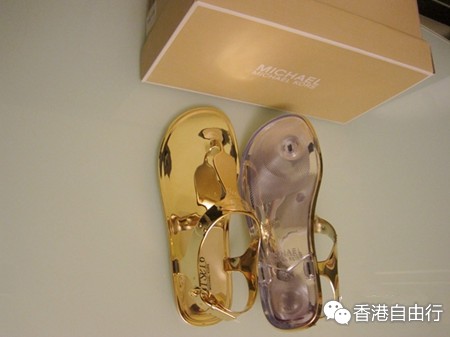 沙田MK因为折扣的关系,需要排队入店。我连续去了三四次,哇!这双水晶底夹趾鞋,五折后350HK,我对金色没抵抗力,纠结来纠结去还是买了。