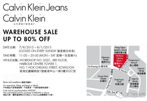 香港打折:Calvin Klein Jeans/Calvin Klein Underwear开仓优惠低至2折(至15年8月1日)