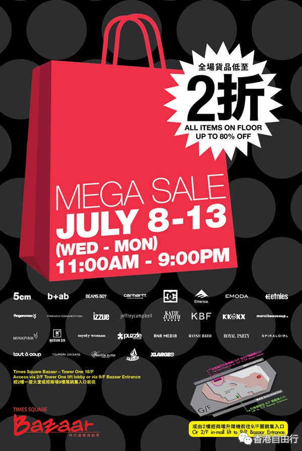 香港打折:时代广场 i.t Mega Sale低至2折(2015年7月8日至13日)