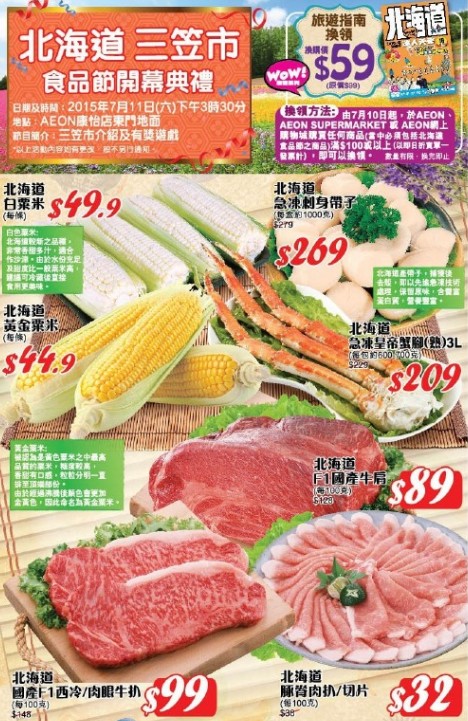 香港打折:AEON 北海道食品节/日本食品节购物优惠(至15年7月22日)
