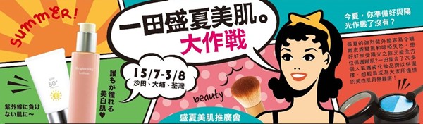 香港打折:一田百货盛夏美肌大作战超多化妆品购物优惠(至15年8月3日)