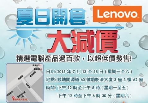 香港打折:联想LENOVO夏日开仓大减价购物优惠(至15年7月18日)