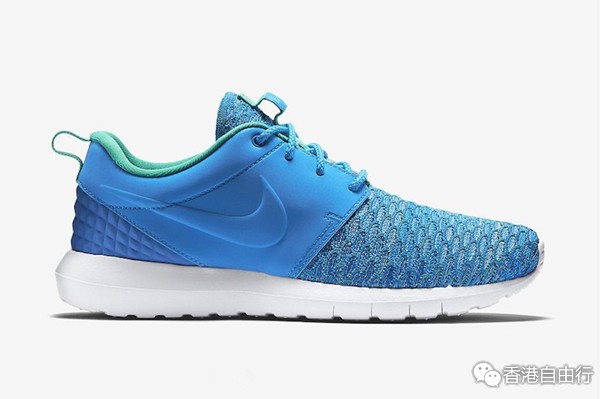 Nike 近日再为超人气跑鞋 Roshe One Flyknit 带来这双全新的「Photo Blue」配色。运用轻量透气 Flyknit 针织与合成材质结合制作的鞋身以明亮的蓝色调贯穿,与内里融入湖绿色让整体清爽感更上一层,最后再搭载简约干净的全白大底。定价为 $151 美元,约是1170港币。