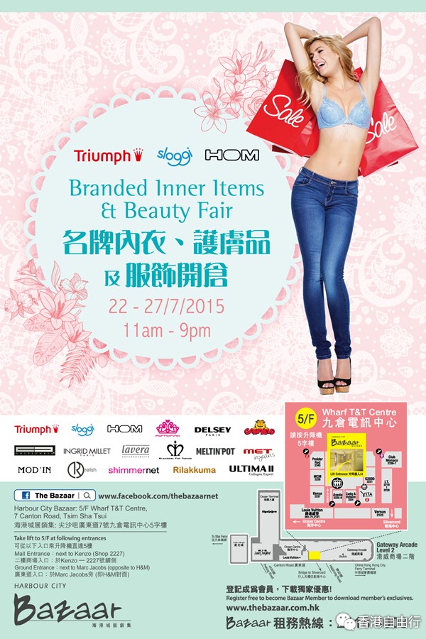 海港城Bazaar名牌内衣、护肤品及服饰开仓(2015年7月22日至27日);