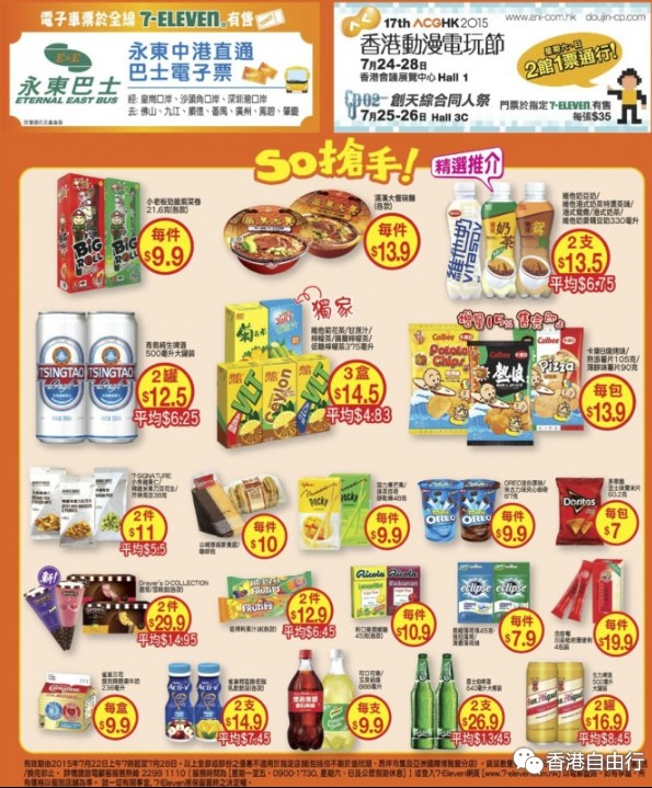香港打折:7-Eleven本周抢手货购物优惠(15年7月22至28日)