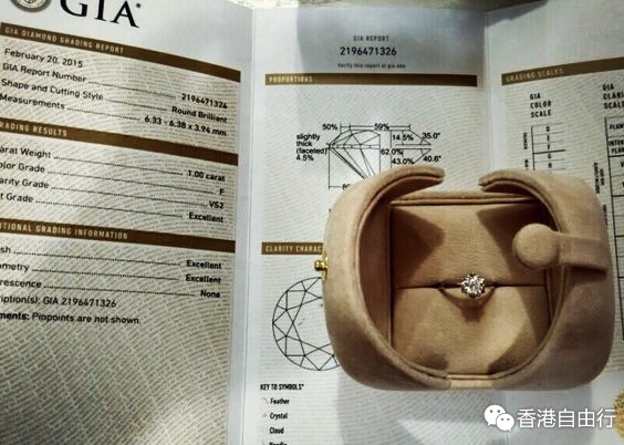 先生对钻戒的要求是一克拉,其他细节我自己决定。浏览了一些关于钻石4c的介绍,从保值和性价比等角度综合考虑,把4c定在F色、VS2、3ex和无荧光。和很多女孩子一样,我也有蒂芙尼的小蓝盒情结,而且蒂芙尼的4c标准和其他绝大部分品牌(包括卡地亚)的国际GIA标准都不同,感觉更加高大上,建议有小蓝盒情结的土豪可以考虑蒂芙尼,肯定是一分价钱一分货的。但我和先生都不是土豪,最后做出决定选择裸钻定制,价格大约都在5.6-6万港币之间(折合人民币大约4.5-4.8万)。