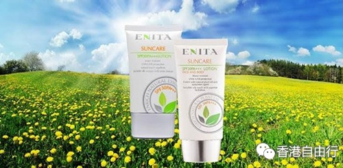 ENITA 天然防晒系列 SPF30PA+++,含有物理性防晒物质氧化锌(Zinc Oxide)及二氧化鈦(TiO2),提供高效防晒保护,可抵御UVB/UVA对皮肤伤害,预防UVA造成皮肤过早衰老。高度保湿、持久防汗,不含化学性防晒物质,为肌肤提供全面的每日防晒保护。此外,产品质地轻盈及含抗氧化物质,同时提亮肤色,令肌肤焕发透亮光采。