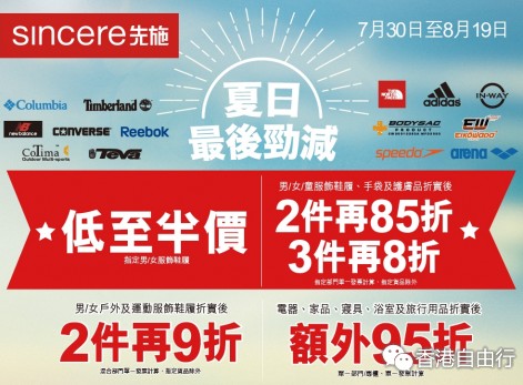 香港打折:先施百货夏日最后劲减低至半价优惠(至15年7月30至8月19日)