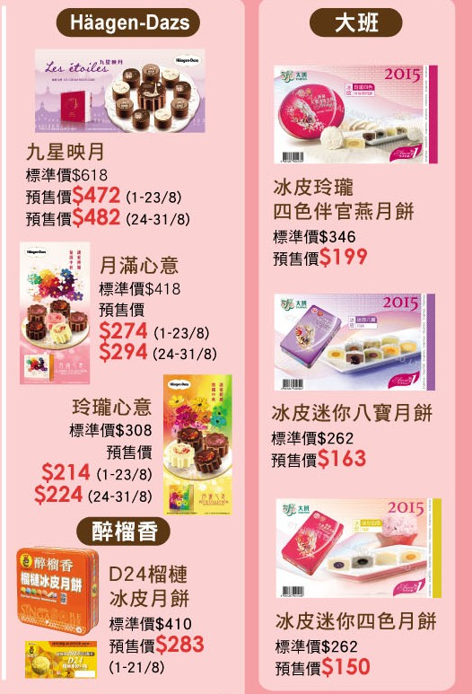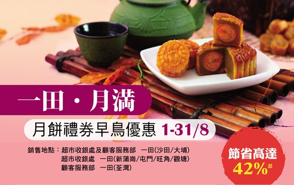 香港打折:一田百货月饼礼劵早鸟优惠 节省高达42%(至15年8月31日)
