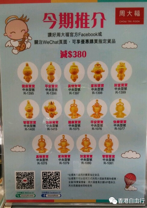 周大福一口价活动是这样的,买任何产品送200,第二件一口价产品满2000均可以减价200,图二海报款均可以再减380等于可以减掉580,所以,福星宝宝很抢手。要买朋友赶快下手啰!!