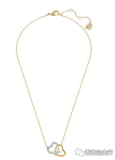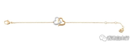 浪漫,妩媚又时尚 - 镀金色和镀白金色手链有两颗交错的心,象徵和谐和爱情。金色魅影水晶,透明密镶水晶和两种不同颜色镀层的搭配更添时尚。