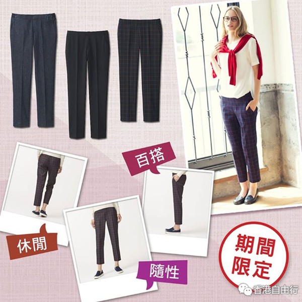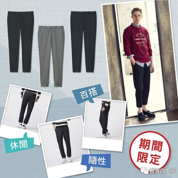 香港优惠:UNIQLO指定男装休闲束脚长裤及女装9分裤$249减至$199(15年8月14至27日)