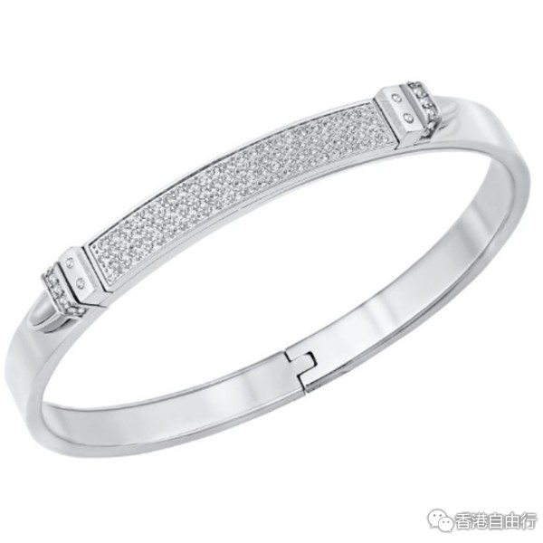 无论是单独佩戴或混搭其他手镯,这款亮泽高贵的不锈钢手镯(中等尺寸),都能展现华丽耀眼的风采。 除缀有透明密镶水晶外,这款时尚与现代感兼备的首饰,更融入了两枚闪亮迷人的搭扣,而其中一枚搭扣更有实际用途,绝对是时尚潮人的必备之选。