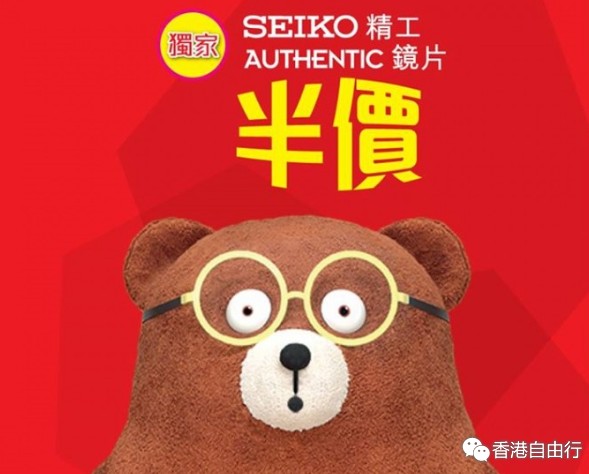 香港打折:眼镜88 SEIKO AUTHENTIC指定型号镜片半价优惠(15年8月19日起)