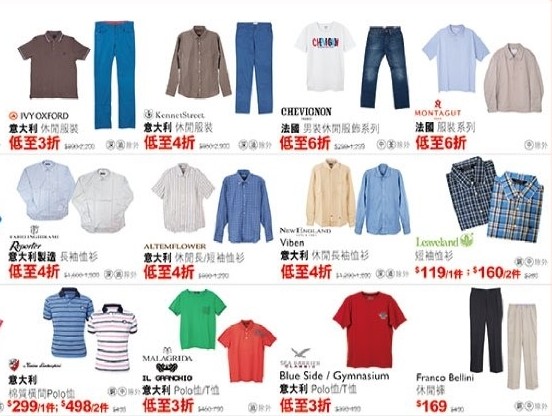 2.男/女服饰鞋履、手袋及护肤品折实后2件再85折; 3件再8折;4件再75折(指定部门单一发票计票、指定货品除外)